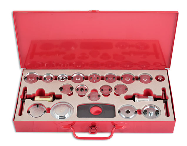 A comprehensive set of special adaptors to enable the quickest way of replacing worn brake pads on both "wind-back" and "push-back" callipers.